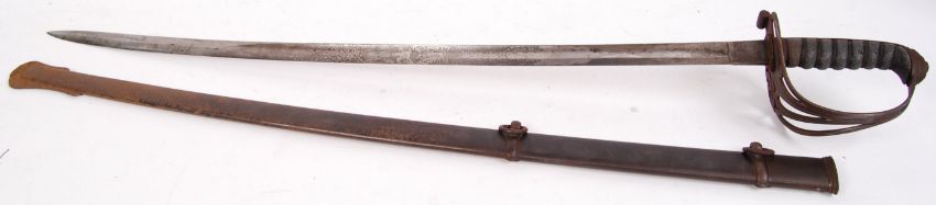 An antique Victorian mid to late 19th century Somersetshire Rifles Officers Sword. Blade decorative with pattern & crest of Somersetshire Rifles. Bearing makers mark and address ' Firmin & Son, 153 Strand & 13 Conduit St, London ' to top of blade. Handle of Shark skin construction. Within its original scabbard & measures approx 100cm long.