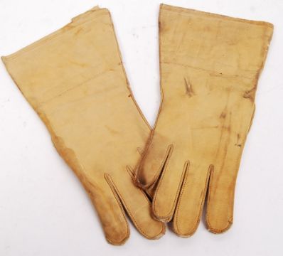 A good pair of WWII Second World War era motorcycle / dispatch riders leather motorcycle gloves. Tan leather construction, in generally very good little-used condition. Military issue, crows foot stamps to inside. Made by Thomas Endor & Sons.