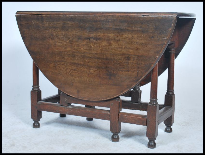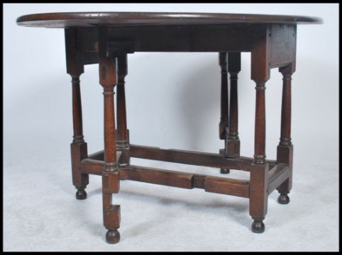 A late 19th early 20th century peg jointed oak drop leaf gate leg dining table, the oval top raised on rectangular shaped gate leg support. Measures: 107cm high x 69cm wide x 25cm deep.