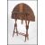 A 19th century mahogany folding coaching / campaign table being raised on turned legs with circular folding table top above. Measures: 60cm high x 90cm diameter.