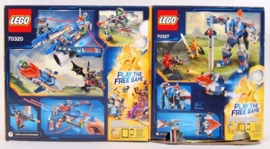 A collection of 2x Lego Nexo Knights boxed sets to include; 70327 The King's Mech & 70320 Aaron Fox's Aero- Striker V2. Contents loose bagged. Within the original boxes with instructions.  Note: Vendor assures that all sets are 100% complete however, buyers are reminded to satisfy themselves as to the completeness of each set.