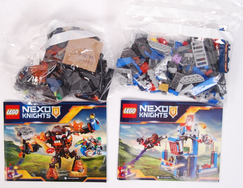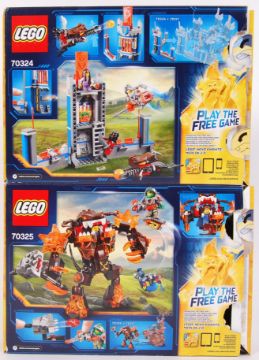 A collection of 2x Lego Nexo Knights boxed sets to include; 70324 Merlok's Library 2.0 & 70325 Infernox captures the Queen. Contents loose bagged. Both within the original boxes with instructions.  Note: Vendor assures that all sets are 100% complete however, buyers are reminded to satisfy themselves as to the completeness of each set.