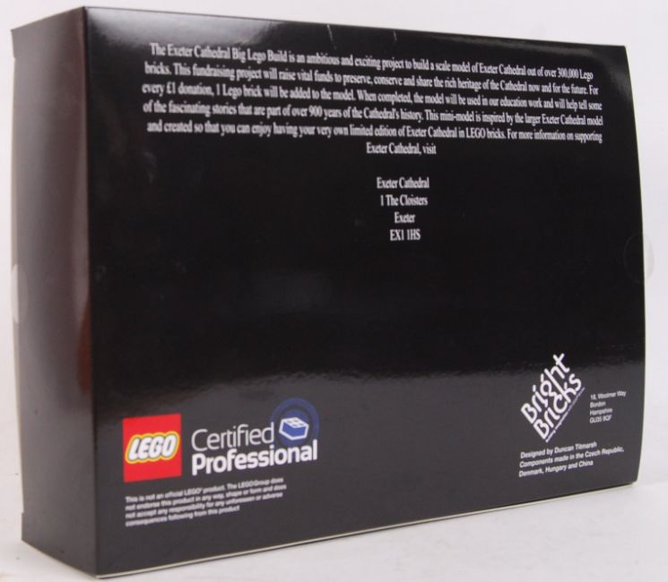 A limited edition certified Lego Professional ' Bright Bricks ' set 'Exeter Cathedral' boxed set. 457 out of 500. Mint within its original box. Has never been opened, and contents are sealed. Tape tabs have naturally come unstuck.