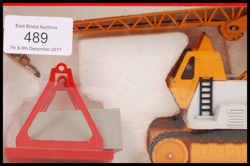 A vintage Corgi 1154 diecast model construction crane with 'Block Construction' livery. Within the original box.