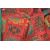 A retro 20th century throw / cover heavily influenced by South American designs set on green ground with geometric patterns / panels running throughout together with another near identical one but having a red ground.
