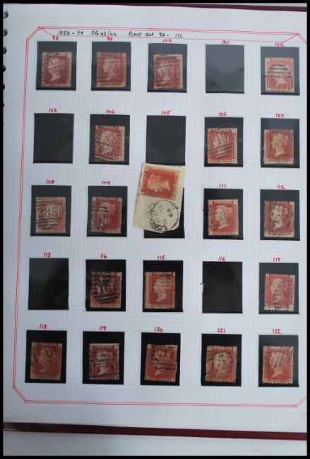 Postal History - Penny Red Stamps, a Stanley Gibbons SG 43/44 stamp album containing approx 123 Victorian Penny Red stamps.
