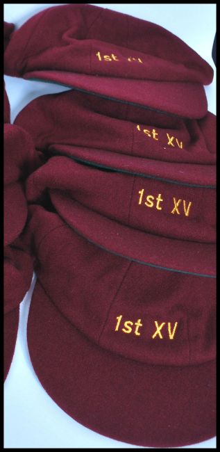 A set of 24 vintage rugby sporting caps of matching form with embroidered numbers having plain area to hat form club badge to be applied.
