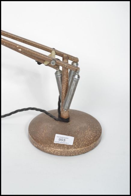 A Herbert Terrry Industrial anglepoise desk lamp raised on terraced base with pendant shade in an unusual gold / bronzedrr coloured finish