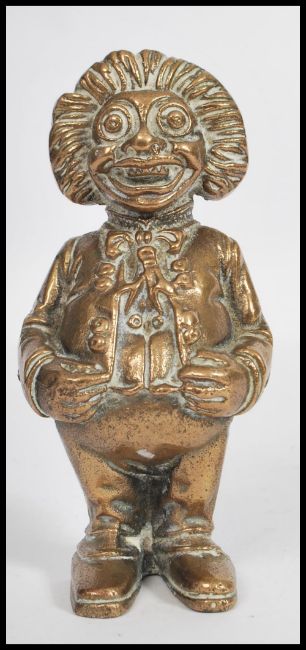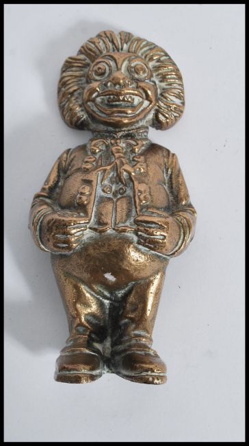 A 19th century Victorian bronze hollow figurine of a clown with open mouth.