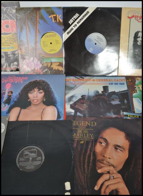 A group of vintage vinyl record long plays LP's to include Motown, Micheal Jackson, Ray Charles, The Jacksons, Stevie Wonder, Bob Marley, Barry White, Gibson Brother, Donna Summer, John Holt, Paul Simon, etc. Please see images.