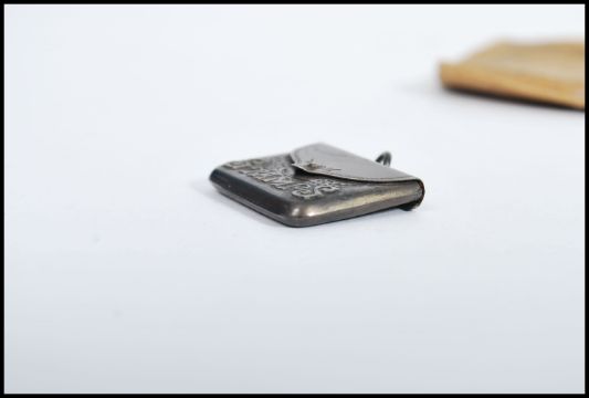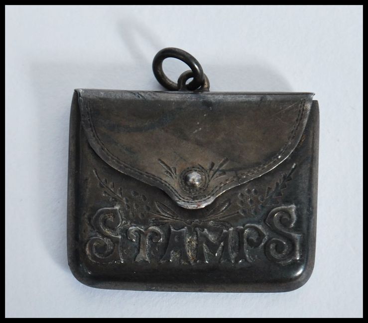 A George V silver stamp case, Birmingham 1911, the front inscribed stamps with marks for C&N / O&N, 5.4 grams, the front with bright cut decoration.