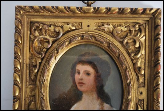 Henry Woods, RA (British, 1846-1921), A 19th century miniature oil painting of a young lady in a state of undress, signed and set within a gilt oval glazed frame. Measures 17.5cm x 15cm.