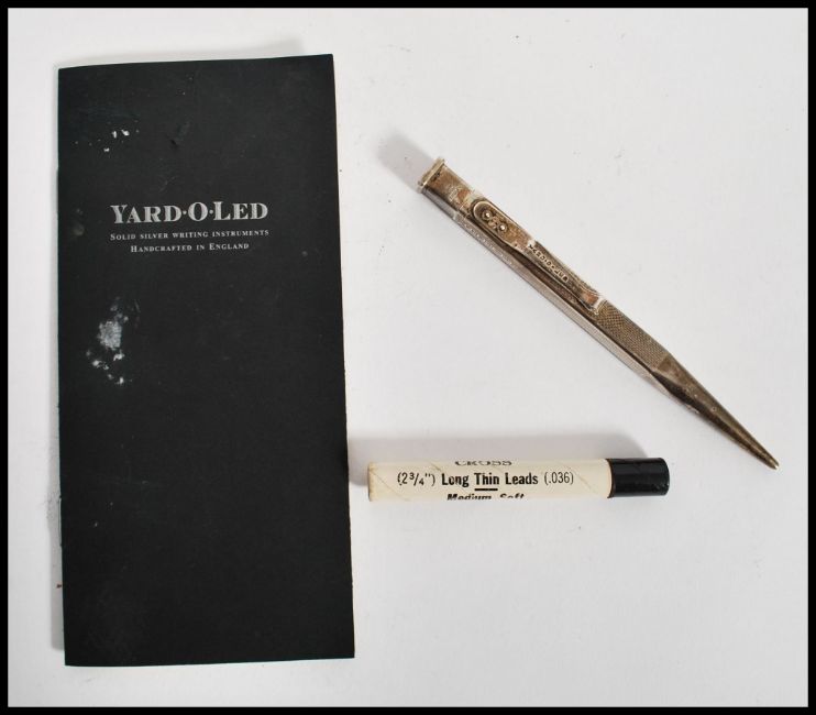A vintage sterling silver yard o led silver pencil of larger form complete with pouch, handbook and replacement lead.