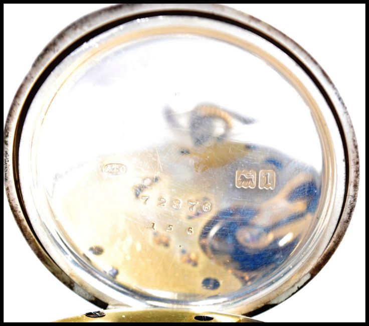A silver hallmarked gents open faced crown wind lever pocket watch, the enamel face with Roman numeral chapter ring, subsidiary seconds dial and inscription reading G Baker Gloucester, London assay marks dating to 1906 and makers marks for  Albert Thomas Oliver. Measures 5 cm diameter.