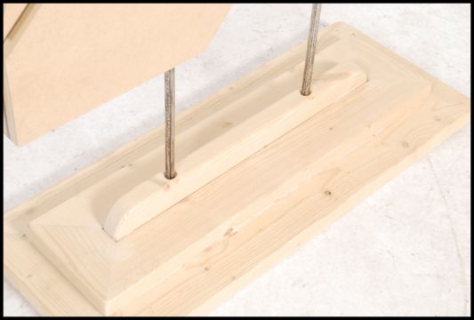 A contemporary handmade advertising point of sale swan sculpture constructed of panel wood and acryllic in the form of a swan and raised on a terraced plinth base being originally designed as a logo for a national company.  Measures: 139cm high x 91cm wide x 37cm deep.