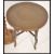 An early 20th century oak and brass top Islamic Binares table together with a 20th century oak bobbin turned standard lamp on terraced base with shade atop