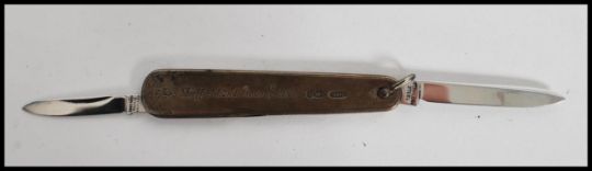 A silver hallmarked pocket fruit knife by George Ibberson & Co, Sheffield 1951. The knife with signature and notation either side. Total weight 29.6g