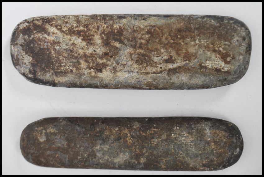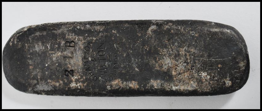 Two vintage horse racing equestrian jockey riders handicap lead weights to include a 1lb and a 2lb example. Both with stamped notation for Champion and Wilton of Oxford.