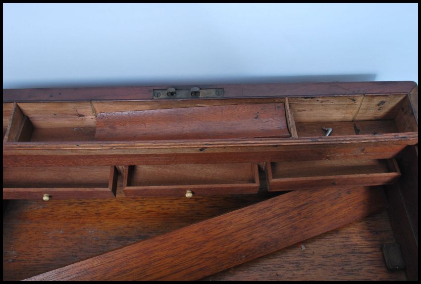 A good sized 19th century mahogany and brass bounjd writing slope opening to reveal a fully appointed interior,  leather gilt tooled scribe with a drawer below