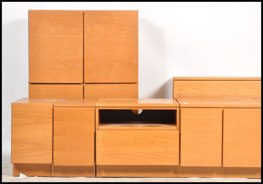 A selection of retro teak wood modular sectional Tapley wall and floor units / cabinets, the units being able to arrange in a variety of settings.