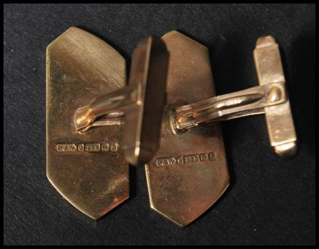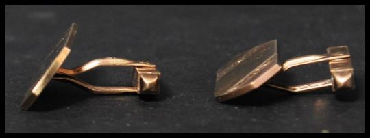 A pair of hallmarked 9ct gold of larger form of oblong shape having engraved decoration. Weighs 11.2 grams.