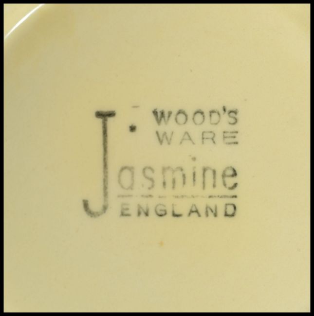 A vintage 20th century art deco part tea and dinner service by Woods in the Jasmine pattern consisting of tea pot, plates etc. .
