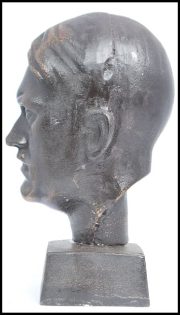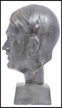 A modern cast iron bust, modelled in the form of Adolf Hitler, on a square base, unsigned, 20cm high.