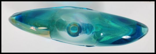 A vintage 20th century Mdina studio art axe head vase being signed to base designed by Michael Harris. Signed Mdina 1975 to base. Measures 25cm x 21cm.