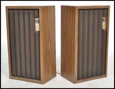 A pair of Winthrop vintage speakers model no KB14. Each of upright form having ridged facia to each