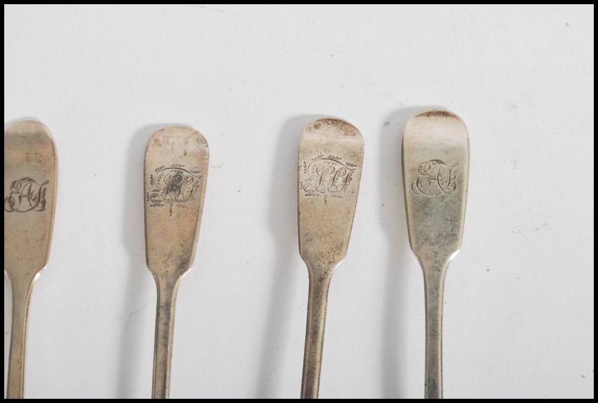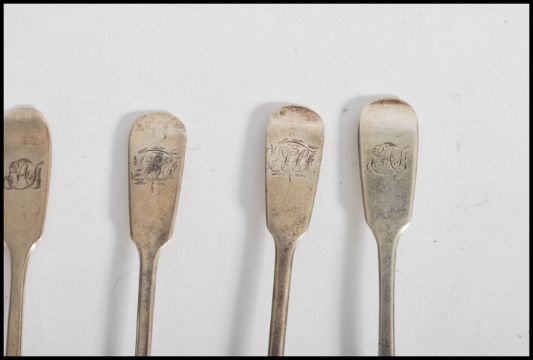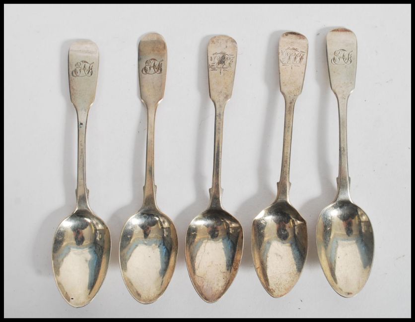 A matched set of 5 Victorian silver hallmarked teaspoons ( 3 )688 by Henry Holland (of Holland, Aldwinckle & Slater), London together with 2 silver teaspoons by James Beebe, London. Total weight 86.5g
