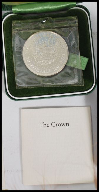 A collection of proof coins to include a First Coinage Of The British Virgin Islands Proof Set, two silver wedding crowns, Republic of Panama 20 Balboas coins (2), Cook Island 2 Dollar coin. Bermuda coins, The Royal Wedding of H.R.H. The Princess Anne - Captain Mark Phillips Silver and Bronze coin set. Please see images.