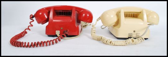 2 1970's 20th century retro ring dial BT phones - telephones. onein cream colourway the other being red