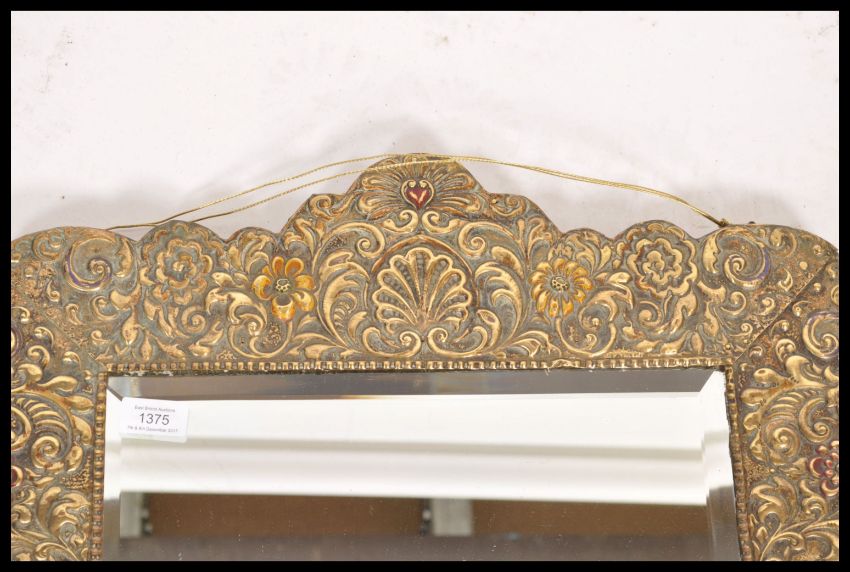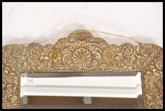 A 19th century Victorian brass framed wall mirror. The central bevelled glass panel having a gadrooned border with ornate shell and scroll embossing to the frame.