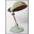 A vintage mid 20th century retro industrial duck egg desk top work light by Metek having a half moon pendant shade with adjustable goose neck and domed circular base.
