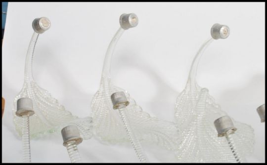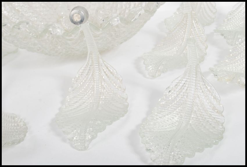 A stunning early 20th century Murano Italian glass chandalier ( parts ) having the most amazing leaf arms and central bowl of round form being heavily faceted. Measures 43cm in diameter.