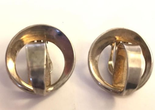 A pair of vintage silver Anna Greta Eker Norwegian modernist clip on earrings. Signed with Anna Greta Eker mark,  Norway Sterling 925.  Weight 10.75. Measures approx 2.5cms.