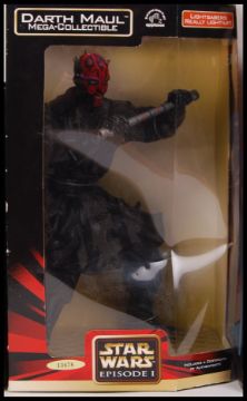 Three Star Wars Episode I relating items to include; Think Way Dancing Jar Jar Binks, Applause made Darth Maul Mega Collectible figure & Tiger Electronics Destroyer Droid Room Alarm. All within their original boxes.