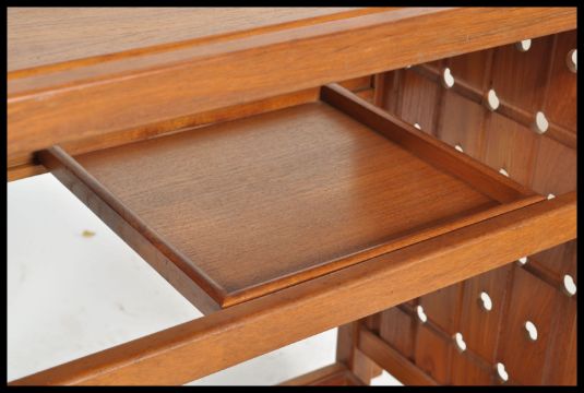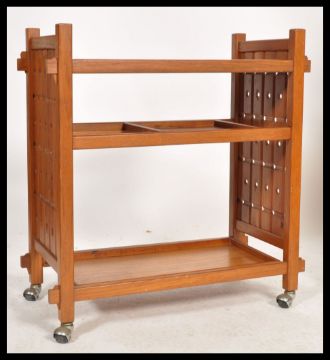 A vintage mid 20th century retro danish influence teak trolley with sliding removable trays raised on chrome castors. Measures 79cm x 75cm x 37cm.