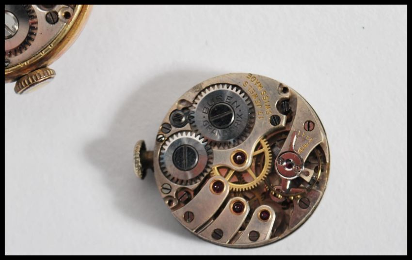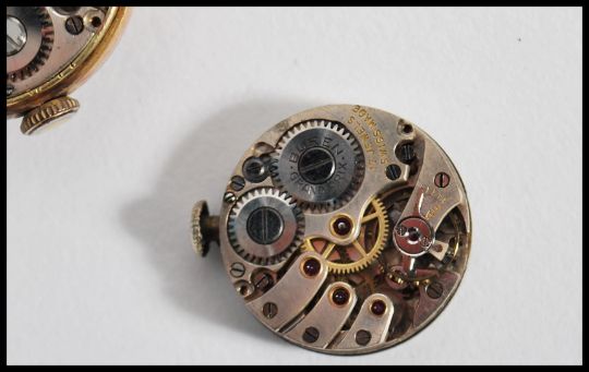 Two vintage 20th century hallmarked 9ct gold watches one set to a rolled fold strap having a silvered dial faceted hands and a subsidiary seconds dial. The other having no strap with faceted hands.