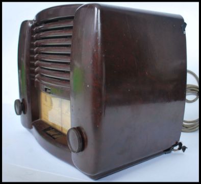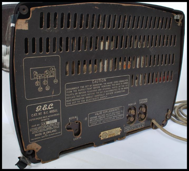 A vintage mid 20th century Bakelite GEC model BC4850 - L valve radio, dials and display to front.