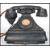 A vintage 20th century bakelite ring dial telephone. Raised on a square plinth base with sloped sides ring dial to front with phone atop.Measures 20 cm high, 20 cm wide and 16 cm deep.