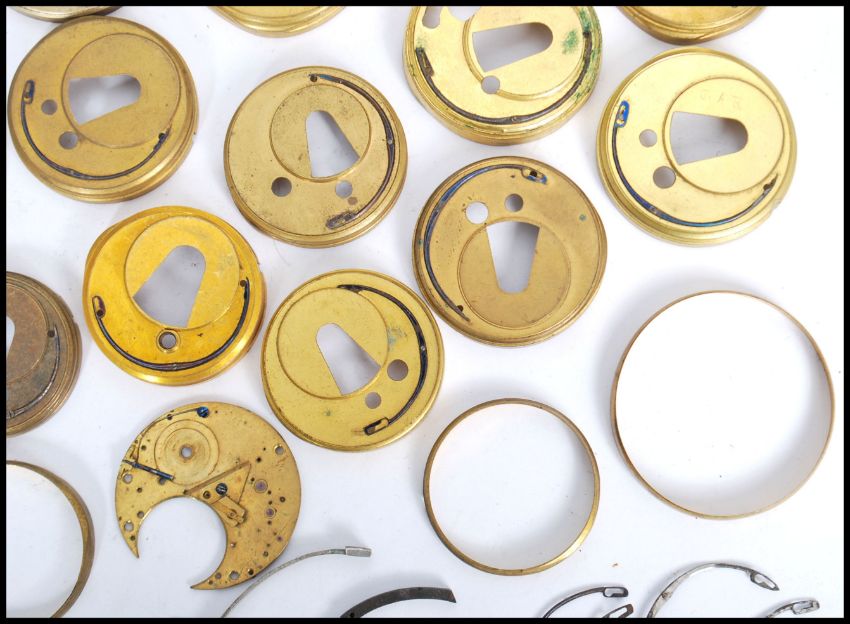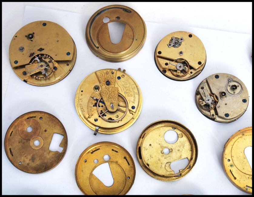 A good collection of vintage 19th and 20th century pocket watch movements, faces and dust covers, various makes please see images.