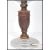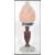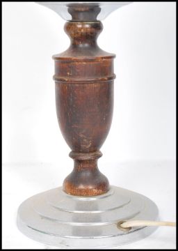 A stunning Art Deco Olympia style oak table lamp of simple form standing on a stepped circular base, having a frosted torch flame glass .