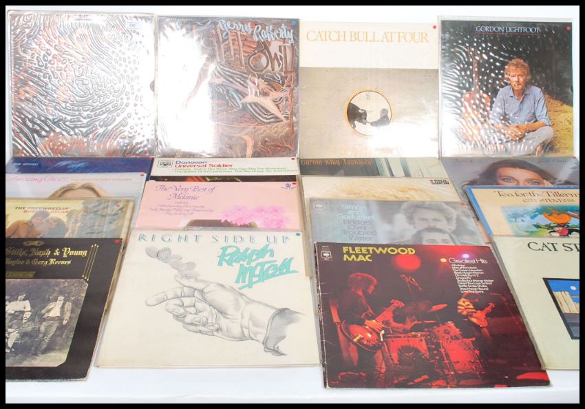 Vinyl Records - A good collection of mainly folk related Long Play / LP vinyl album 12" records to include various artists to include Gerry Rafferty, Cat Stevens, Gordon Lightfoot, Joni Mitchell, Donovan, Carole King, Judy Collins, Bob Dylan, Melanie, Ralph McTell, Paul Simon, Fleetwood Mac, Crosby Stills Nash and Young etc.