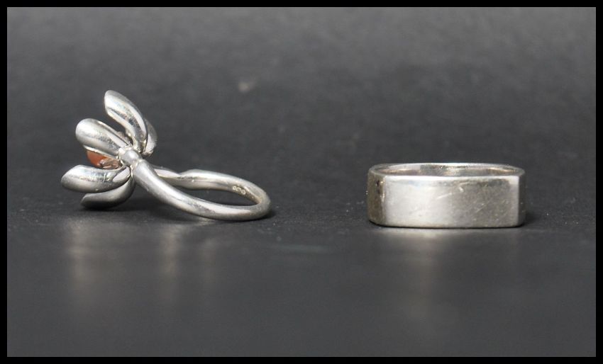 A Links of London Night Time garden ring decorated with pink enamel and set with a pink pearl, hallmarked London.  Together with a silver band ring marked 925.