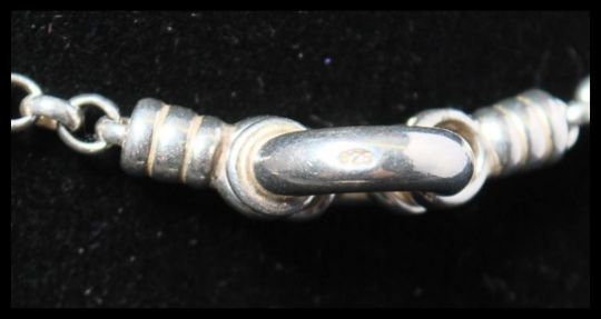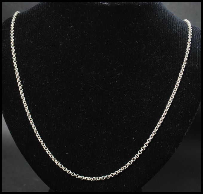 A hallmarked 925 silver Links of London chain with large spring hoop clasp. Hallmarked London. Measures 24 inches. Weight 14g.