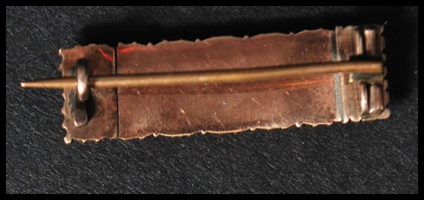 A 9ct gold Victorian bar brooch set with seed and blister pearls having a C clasp. Measures 3cms. Total weight 3.2g. One seed pearl missing.