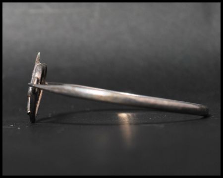 A hallmarked 925 silver bangle bracelet having a butterfly motif clip clasp. Weight 10g.