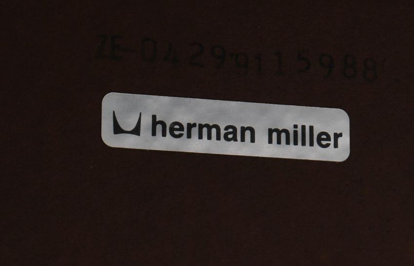 A mid 20th century retro Herman Miller Swivel ' Action ' Desk in the manner of George Nelson. The grey swivel rise and fall large desk top over metal splayed ebonised frame united by similar discretion panel. Herman Miller labels to underside. Measures 101cm high x 84cm wide x 43cm deep.
