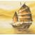 A mid century retro oil on canvas painting of a Chinese junk painting at sunset by Jonathan Hall. Set within white frame.